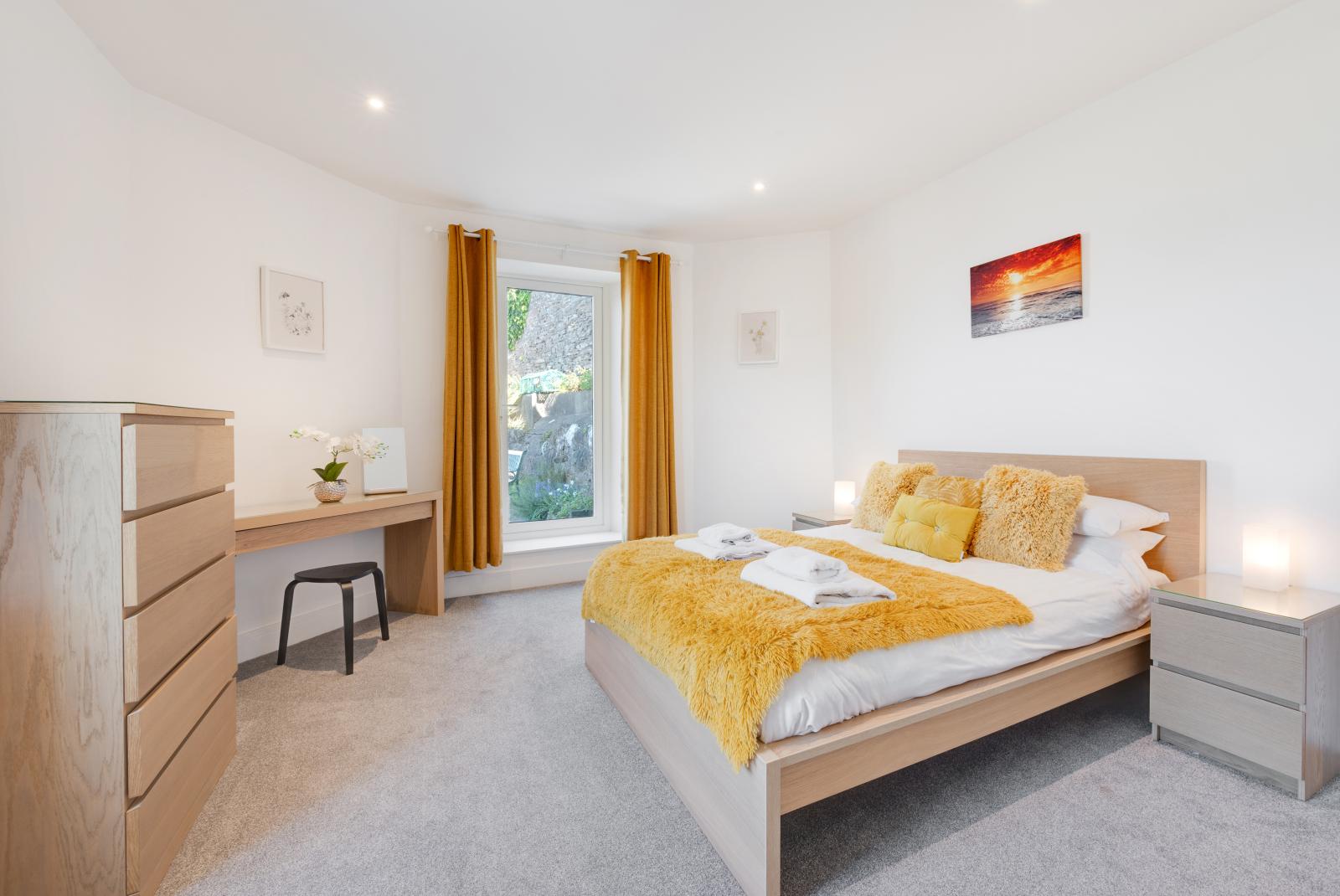 Our living room at Pirates View - aptly named the room with a view - is where the harbour truly takes centre stage. Positioned upstairs to make the most of the outlook, it’s a light-filled, comfortable space designed for unwinding together, whether you’re watching the boats come and go, settling in with a board game, or enjoying a quiet evening in.